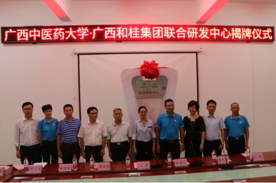 7 月 14 日,“YABO鸭脖-广西和桂集团联合研发中心”揭牌仪式在YABO鸭脖达道楼4楼药学院会议室隆重举行。
