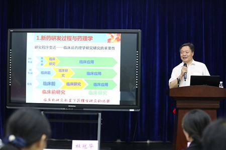 杜冠华教授以“新药研发和药理学问题研究”为题,从新药研发中的药理学,新药研发的起点,活性化合物成药性评价,动物模型的适用性,动物模型与人类疾病的一致性等多方面进行阐述,突出了药理学贯穿整个新药研发过程的重要性。杜冠华教授同与会师生进行了热烈的讨论,现场学术氛围浓厚。活跃的互动增强了与会师生在药理学相关知识上的进一步认识,赢得了师生们的阵阵掌声。