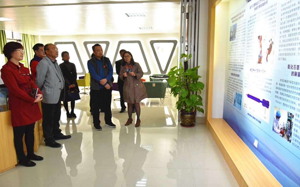 冷静副校长陪同教育厅专家组参观石墨烯研究院展览厅