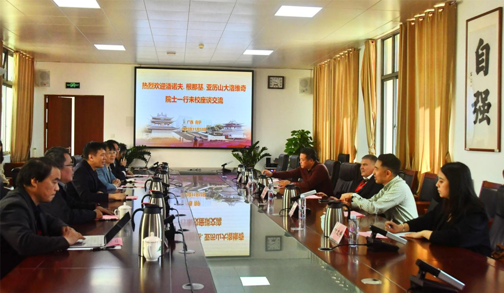 肖健代表学校对潘诺夫.根那基.亚历山大洛维奇一行的来访表示欢迎,并简要介绍了学校情况及办学特色。潘诺夫.根那基.亚历山大洛维奇对鸭脖的热情接待表示感谢,表达了本次来访的主要目的,希望今后双方在人才培养、科学研究等方面加强合作,实现互利共赢。