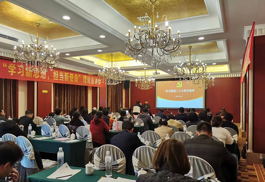 支部书记黄瑞诚在会上阐述了功能型党小组在教学实施、学生管理、党群关系及创新创业等方面的重要作用,并强调各教学点党员干部要发挥党员的先锋模范作用,加强对学生的意识形态教育,不断提升教学点管理水平。会上,直属党总支副书记、成教院副院长覃振林开展“学习新思想,担当新使命”理论宣讲,以《学习党的二十大精神》为主题,带领大家深入学习了党的二十大报告的思想及内涵。通过主题宣讲加强了大家对于学习党的二十大精神重要性、必要性的认识。