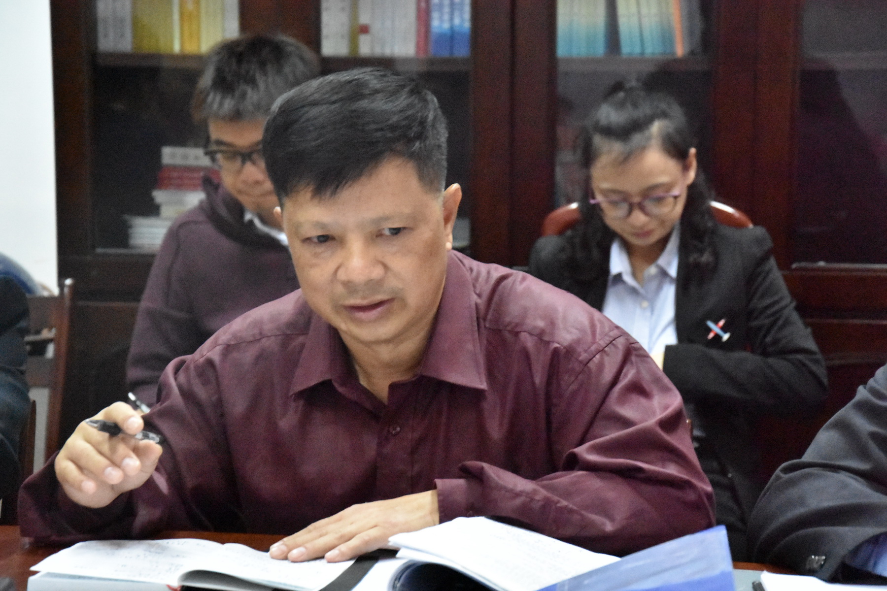 尤剑鹏一行实地考察了成教院的办公场所,详细了解办公情况,并就关心的问题与成教院职工亲切交谈。随后与成教院领导班子和全体职工进行了座谈,认真听取了院长韦艾凌就直属党委、成人教育学院的工作、现状、取得的成绩以及存在问题所做的汇报。成教院副院长黄瑞诚就成教院近年开展的教学检查评估、教学管理常态化检查、全区成高统考等系列工作进行了补充汇报。直属党委副书记、成教院副院长覃振林就直属党委的相关工作也进行了汇报。