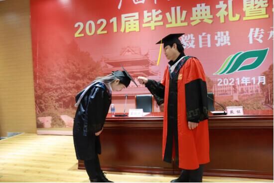 覃振林宣读了2021届优秀毕业生表彰文件,各位领导为优秀毕业生代表颁发了荣誉证书,为毕业生代表颁发了毕业证书和学位证书。