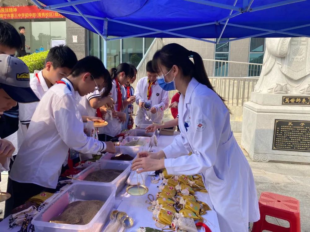 为深入贯彻落实党的二十大精神,促进中医药壮瑶医药传承创新发展,推动中医药文化贯穿国民教育,融入生产生活,向学生普及掌握中医药知识,启发学生做中华优秀传统文化的传承人,根据《自治区中医药局 自治区党委宣传部 自治区教育厅 自治区文化和旅游厅 自治区卫生健康委 自治区广电局关于印发<广西壮族自治区中医药壮瑶医药文化内涵提升工程实施方案(2021—2025年)>的通知》精神,由自治区中医药管理局主办,YABO鸭脖第一附属医院、南宁市三中初中部(青秀校区)共同承办的壮族三月三·2023年广西中医药文化进校园品牌活动暨南宁市三中初中部(青秀校区)结对共建活动在2023年4月18日下午南宁市三中初中部成功举办。中医治未病中心团队做为活动主要参与者,开展了一场别开生面青少年中医药科普知识讲座和中药香囊制作DIY体验活动,在青少年朋友群中反响热烈。