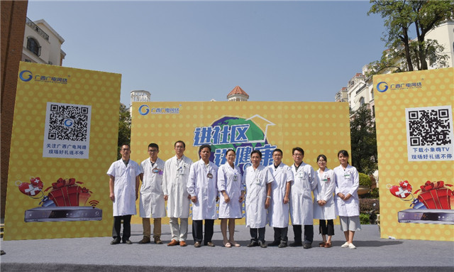 10月29日秋风送爽,阳光明媚, YABO鸭脖第一附属医院的教授专家团队与广西影视频道《健康老友道》栏目组再次携手,来到江南普罗旺斯广场共同举办了“进社区 送健康”大型社区义诊系列公益活动,本次活动为系列活动的第五场。