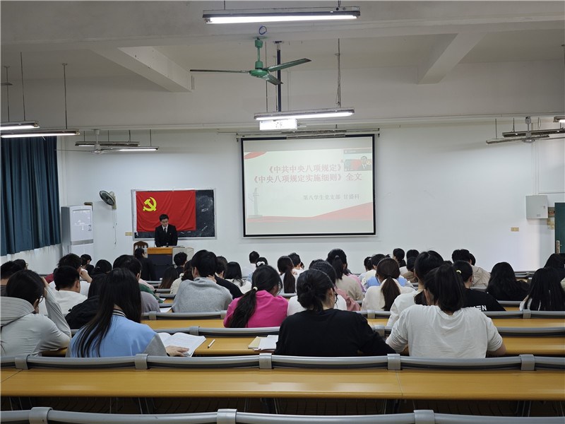 会上第五至第八学生党支部党员代表围绕《习近平:注重家庭,注重家教,注重家风》、《2025年政府工作报告》、《中央八项规定》《中央八项规定实施细则》全文、《国务院办公厅关于提升中药质量促进中医药产业高质量发展的意见》等学习主题进行党课分享。