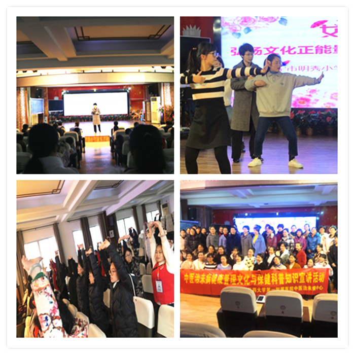 3月8日,我院青年志愿服务团与南宁市西乡塘区明秀小学联合开展“雷锋月之中医传统保健进校园”健康知识宣讲活动。为减轻教师教学压力和助力女神节,我院治未病中心的李羚老师进行传统保健知识宣讲并与志愿者们进行八段锦展示。讲座结束后,老师们纷纷表示,通过此次学习,从理论和实践上收获了很多。对于身体的健康锻炼、心理的健康调节、饮食的健康调剂以及如何健康地工作和生活等都有了全新的认识。本次活动共5名志愿者,为80位老师服务。