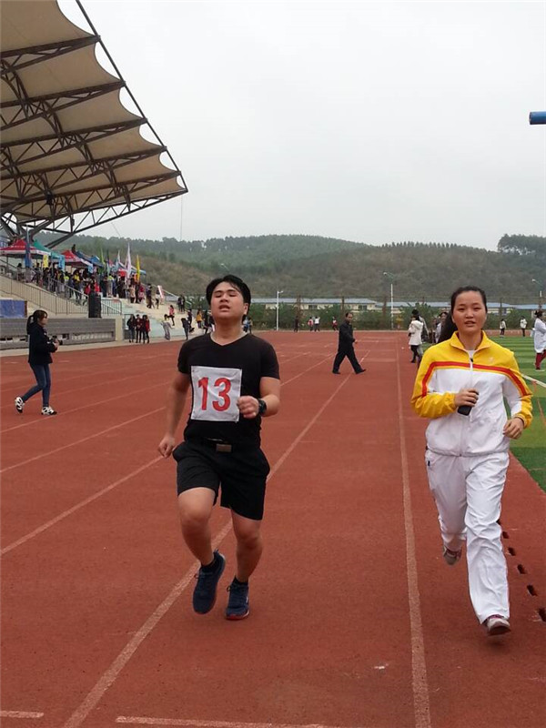 我院2015级泰国学生成业参加男子5000米跑比赛(左一)