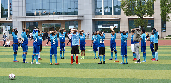 本次比赛,还获得了校手法协会的大力支持,中场休息时,手法协会的队员们为双方运动员进行了放松恢复性肌肉按摩,专业的手法受到了球员们的一致好评。此次比赛也为我院的留学生足球爱好者提供了一个很好的自我展示平台,展现出了鸭脖留学生朝气蓬勃的精神面貌。同时,也增进了与中国学生的友谊,丰富了鸭脖校园文化的建设。