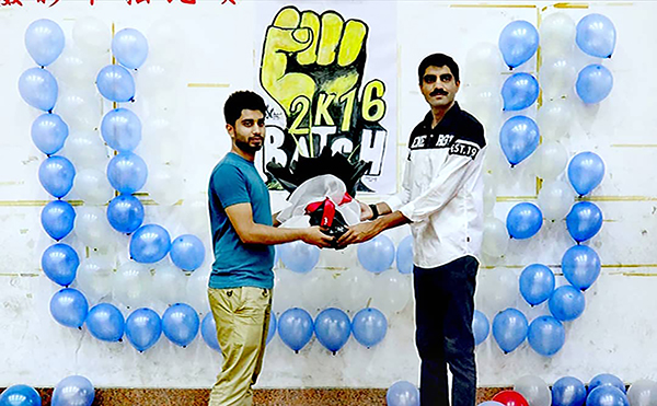 在本次活动中,学生们为敬爱的老师代表阿里献上了鲜花,感谢老师们的谆谆教诲。紧接着巴基斯坦学生Alam rehman tagar 演唱了一首巴基斯坦民歌。在场的巴基斯坦学生都跟着一起合唱起来,现场气氛也热烈起来。