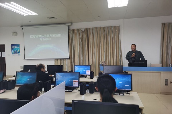 2020 年10月15日,我院于仙葫校区图书馆709教室举行信息管理与信息系统专业新生思想教育大会。我院院长董柏青教授、信息管理与信息系统专业指导委员会主任委员吕炜主任医师分别在会上发表讲话,2020级信息管理与信息系统全体新生参加了此次教育大会。