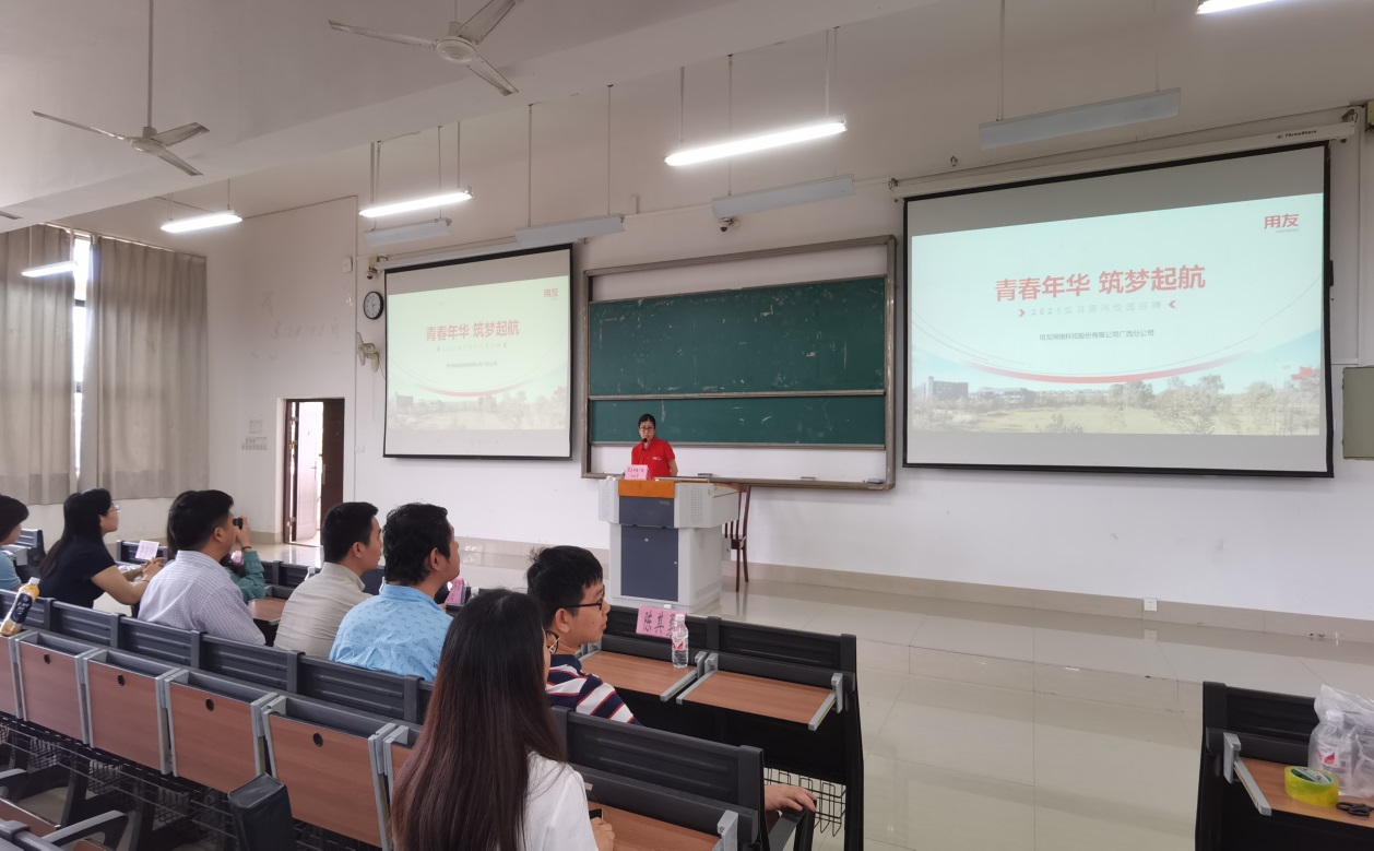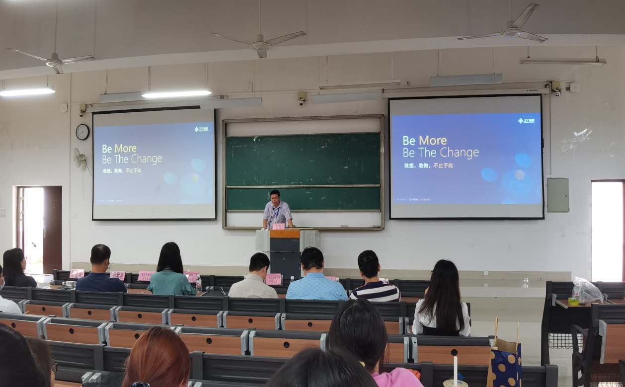 2021 年5月20日,公共卫生与管理学院于YABO鸭脖仙葫校区教学楼1-201教室举行2021年企业入校园宣讲会。宣讲会邀请了卫宁健康股份有限公司、用友网络广西分公司、重庆中联科技有限公司及广西宝信迪科技有限公司分别在大会上宣讲,我院主管学生工作的凌泽农副书记、信息技术系主任甘昕艳、辅导员鲁律韵、计算机教研室副主任秦川等老师和信息管理与信息系统专业全体学生参加了此次宣讲大会。