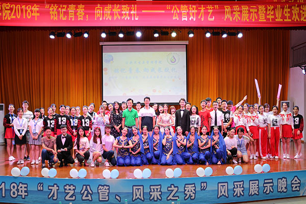 我院于2018年6月10日晚19:00-21:30在仙葫校区小礼堂举办了以“铭记青春,向成长致礼”为主题的“公管好才艺”风采展示暨毕业生欢送晚会,校团委王雄将老师、我院学生工作办公室主任宋南老师、团委书记鲁蕴律老师、医科大信管学院代表及鸭脖各兄弟学院代表出席了此次晚会,我院全体同学热烈响应,积极参与。