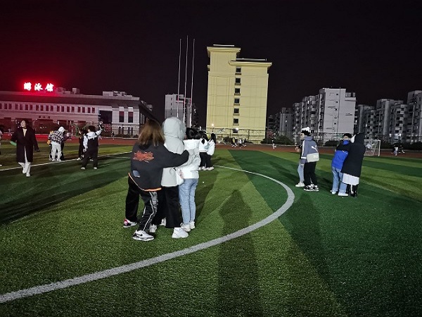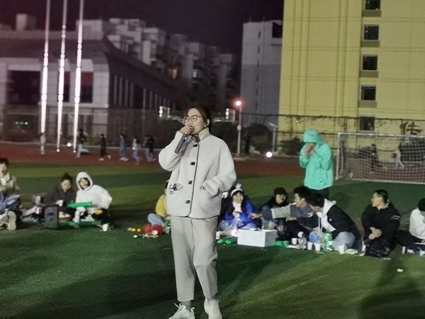 伴随着夜幕的降临,本次活动正式拉开了序幕。活动伊始,主持人致开场词,紧接着各部门代表依次进行表演活动,展示各部门风采,各部门的精彩演出将现场气氛拉到了高潮。期间,我院20级辅导员唐梧茜为本次活动致辞,并为本次活动献上歌曲。随后,是令人期待的游戏环节,本次活动设置了 “爱的抱抱"游戏。各部门的成员都积极热情的参与游戏,在游戏中展现自我,挥洒热情,操场上回荡着同学们的欢声笑语。最后,本次活动在我院团委学生会全体成员的合影留念中落下帷幕。