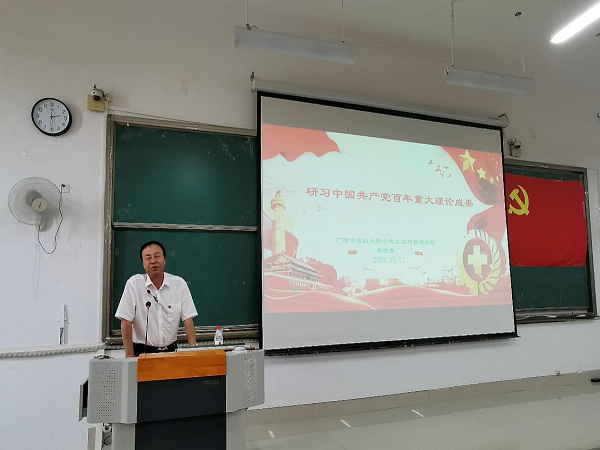 5月11日下午2:30分,公共卫生与管理学院院长董柏青在仙葫校区教学楼1-307为学院学生第一、二党支部讲授党史教育专题党课。我院学生第一党支部书记宋南、第二党支部副书记唐梧茜及全院学生党员和入党积极分子近200人参加本次学习。