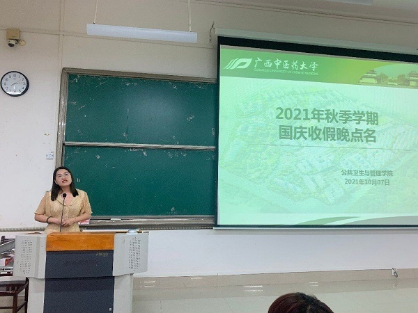为了提高新生对资助知识的了解,提升新生日常学习生活的纪律规范,公共卫生与管理学院于2021年10月7日18:00在仙葫校区教学楼1-203召开2021级新生资助知识宣传暨日常事务培训会,会议由新生辅导员唐梧茜主持,我院2021级医药卫生事业管理班、健康服务管理班、信息管理与信息系统班全体同学参加了本次会议。