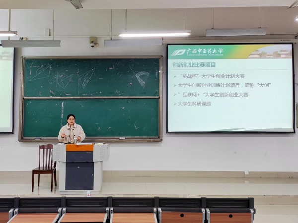 随后,唐梧茜讲解了“挑战杯”大学生创业大赛的具体事项,并介绍了“挑战杯”、“大创”、“互联网+”、“大学生科研课题”这四类创新创业比赛项目的联系与区别,强调参加此类比赛对提高个人综合素质的重要性。 鼓励同学们充分利用假期时间组队、拟稿、开展研究,积极申报创新创业比赛项目。