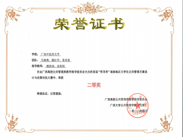 2022年4月8日上午9:00,由广西高校公共管理类教学指导委员会举办的首届“哲寻杯”南部地区大赛正式拉开序幕。由我院魏海斌、涂斯靖两位老师带领2019级公共事业管理专业马海燕、滕红华和姜显春三位同学代表参赛。