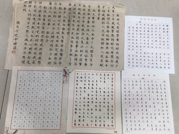 首先,鲁蕴律主持开展了摘抄习近平总书记重要讲话精神的书法比赛。支部全体成员根据以往学习的感悟,用书法摘抄的形式,把对自己影响最为深刻的习近平总书记的讲话精神记录下来。鲁蕴律现场根据作品,请党员同志积极分享个人体会,党员们分享后纷纷表示要将习近平总书记讲话精神作为座右铭,时刻约束自身的行为,努力做到一个有责任、有担当的党员。