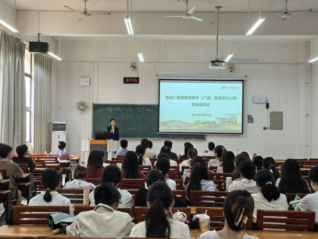 为深化院企合作、拓宽2025届毕业生就业渠道,近期5-6月,公共卫生与管理学院聚焦各专业发展需求,邀请了慈益仁健康服务管理(广西)有限责任公司、太平洋产险广西分公司、泛华保险公估股份有限公司、太平洋产险广东分公司、中国联通广西分公司等多家优质企业,共举办了5场招聘宣讲活动,推动我院毕业生就业服务提质增效。
