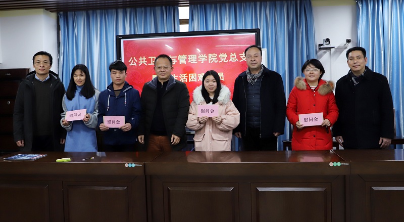 公共卫生与管理学院开展春节期间慰问生活困难党员活动 发布时间:2019-01-17 16:00:03 浏览次数: 次 【字体:小 大】 在新春佳节即将到来之际,2019年1月16日下午,学院党总支书记李怀泽,院长董柏青,副书记副院长凌泽农,学生工作办公室主任、学工党支部书记宋南一行对我院生活困难教职工和学生进行了慰问,向他们致以节日的问候和祝福,并送上节日慰问金。 慰问现场 分享到: 【打印正文】