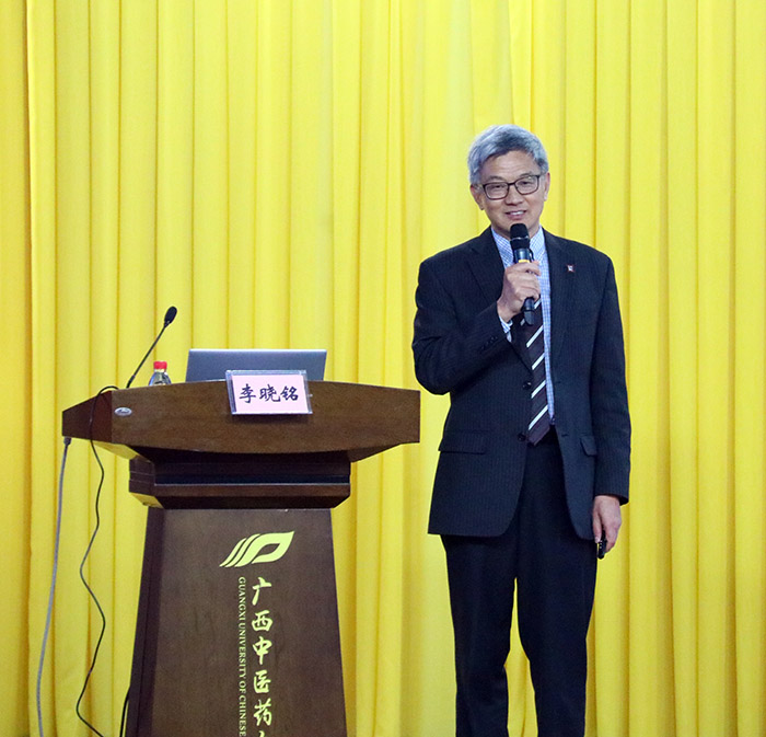 李晓铭介绍了他在广西从事艾滋病研究的缘起,他与广西疾病预防控制中心合作取得了许多丰硕的成果,使广西艾滋病防控的研究走在了全国的前列。2017年,由李晓铭教授牵头的中美“艾滋病相关歧视与临床指标的关联及影响机制研究”项目获得了国家自然科学基金委员会与美国国立卫生研究院(NSFC-NIH)2016年度国际交流与合作项目立项资助,中方资助直接费用167.3万元,研究周期2017年1月至2021年12月共5年时间,这对于推动广西艾滋病防治的研究具有重要的意义。