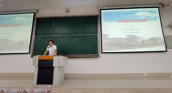 本次活动中,公管学院教工第一党支部首先与南宁市疾病预防控制中心第一党支部进行了党建交流活动,围绕“不忘初心、牢记使命”主题教育的经验和成果,进行了深入交流。之后,邀请南宁市疾病预防控制中心吕忠其科长就“校园食品安全”主题对全校范围的学生进行科普宣讲。吕科长同时分享了其在新冠肺炎疫情期间作为援鄂医疗队成员的事迹和感受,其精彩的演讲赢得了现场听众的热烈掌声,也激发了同学们学习专业知识的积极性和爱国热情。