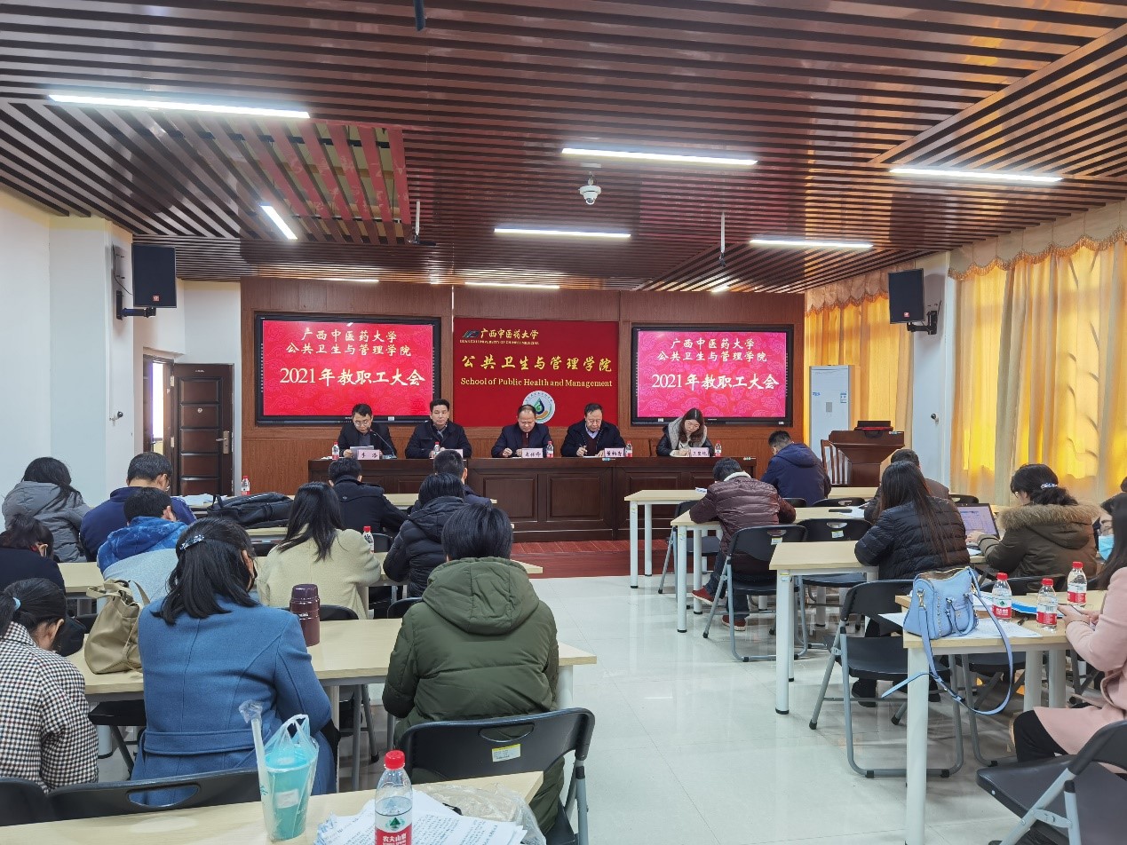 2021年1月12日下午,YABO鸭脖公共卫生与管理学院在仙葫校区自诚楼A801会议室召开了2021年教职工大会。会议由学院党总支书记李怀泽主持,学院领导班子及全体教职工参加了会议。