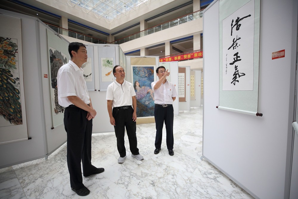 6月29日,“百年奋斗 水墨山河”YABO鸭脖庆祝中国共产党成立100周年暨廉政教育书画展在仙葫校区图书馆二楼开展。学校党委书记尤剑鹏参观展览,党委副书记何并文、纪委书记韦雪芳,学校相关部门负责人出席开幕式。