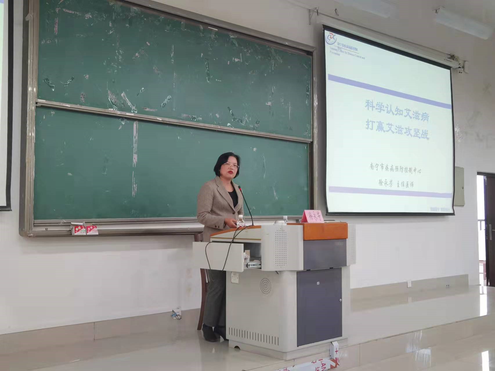 2021年12月5日,公共卫生与管理学院开展 “生命至上 终结艾滋 健康平等”艾滋病知识专题讲座,公共卫生与管理学院教师、学生等共200余人参加讲座。本次讲座邀请了南宁市疾病预防控制中心徐永芳主任医师为同学们授课,徐主任围绕艾滋病防控,结合高校艾滋病防控重点,从艾滋病基础知识、艾滋病的危害及流行现状、高校艾滋病防控挑战等方面展开,她将自己多年来在艾滋病防控一线的经验与体会与同学们分享,呼吁广大学生树立正确的性道德观,增强大学生预防疾病的意识,让世界远离艾滋病。