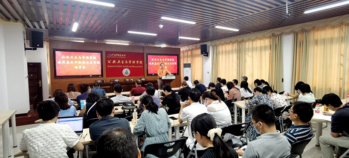 最后,李海副院长指出目前我院在教学、科研、学科建设方面的短板,与区内其他高水平公共卫生学院的主要差距,动员全院师生团结一致、努力拼搏,为建设具有广西特色、中医药特色的高水平公共卫生学院而奋斗。