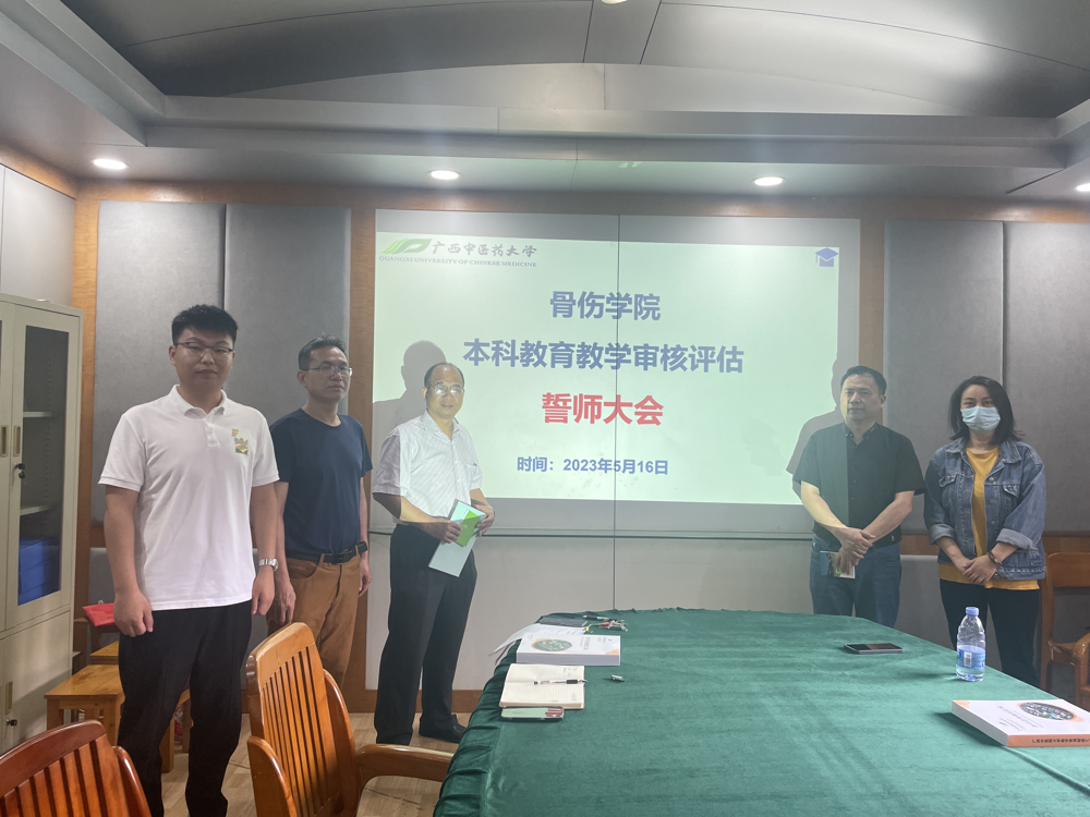 5月16日下午,骨伤学院召开迎接本科教育教学水平审核评估誓师大会。骨伤学院院长周红海、副院长周学龙所有教职工参会。周红海院长主持会议。