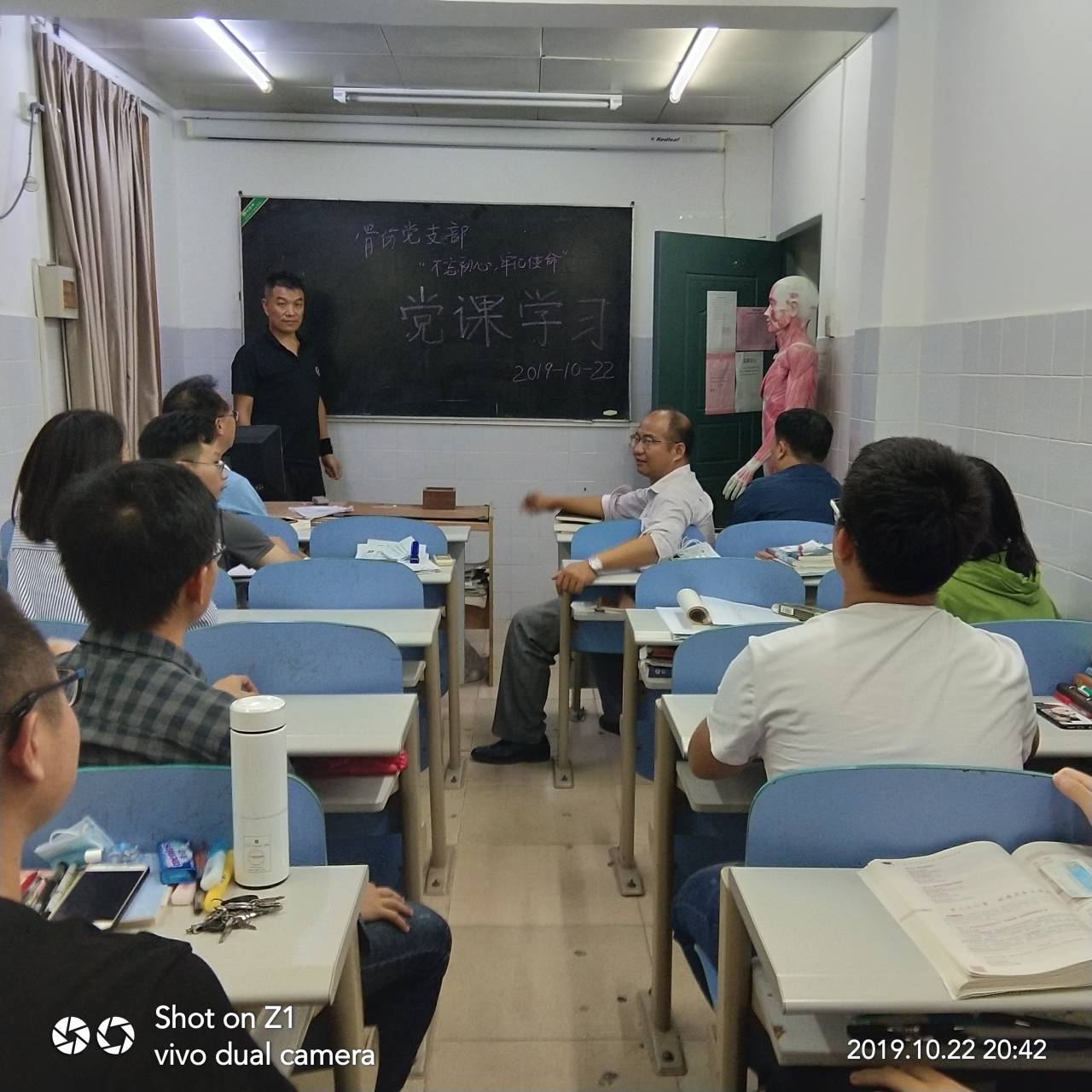 10月22号晚上8点,YABO鸭脖骨伤学院党支部在明秀校区骨伤学院二楼小教室开展了“不忘初心、牢记使命”党课学习活动,骨伤学院党支部全体党员参加了活动。