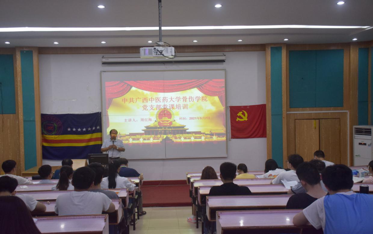 5月7日19点30分,YABO鸭脖骨伤学院在西梯一教室对2017,2018级同学进行党课教育。本次党课由骨伤党支部周红海书记主讲。