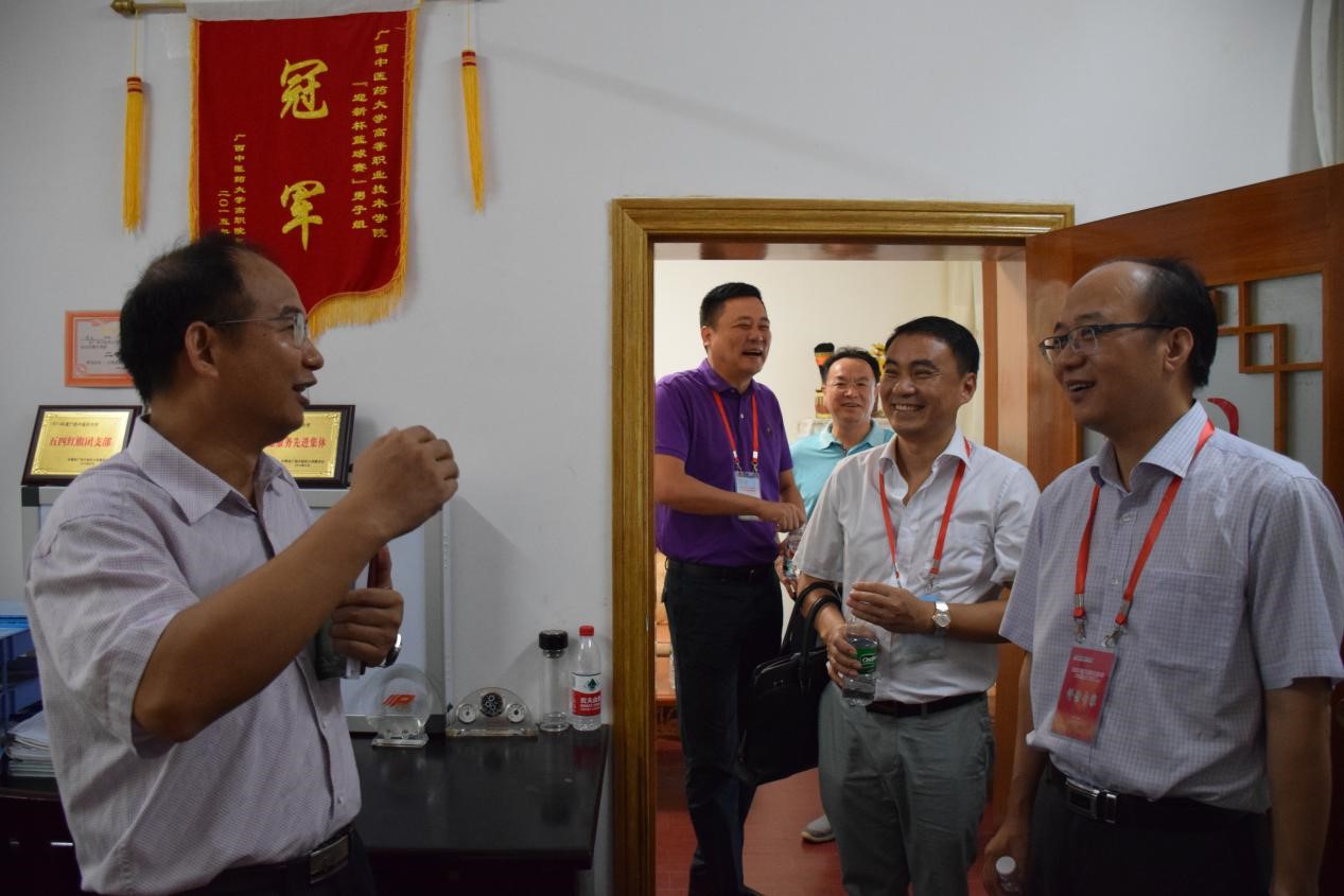 廖院长和曾处长仔细查询了骨伤学院的本科教学信息和文件,并对骨伤学院的教学目的,教学课程进行了询问和评价,对研究生教育也进行了查询。在和骨伤专业13级部分本科学生、14级研究生见面后,他们对YABO鸭脖能够一直坚持进行个特色专业----骨伤科本专科、研究生教学表示赞赏,对设立在骨伤学院、骨伤研究所的广西国际手法医学协会和世界手法医学协联合会多年来在世界各地开展广西国际手法医学流派的研讨传承大为赞叹,在参观完韦贵康教授名医工作室后,廖院长对引进鸭脖人才,在右江民族医学院开展中医骨伤科交流表示了浓厚兴趣。