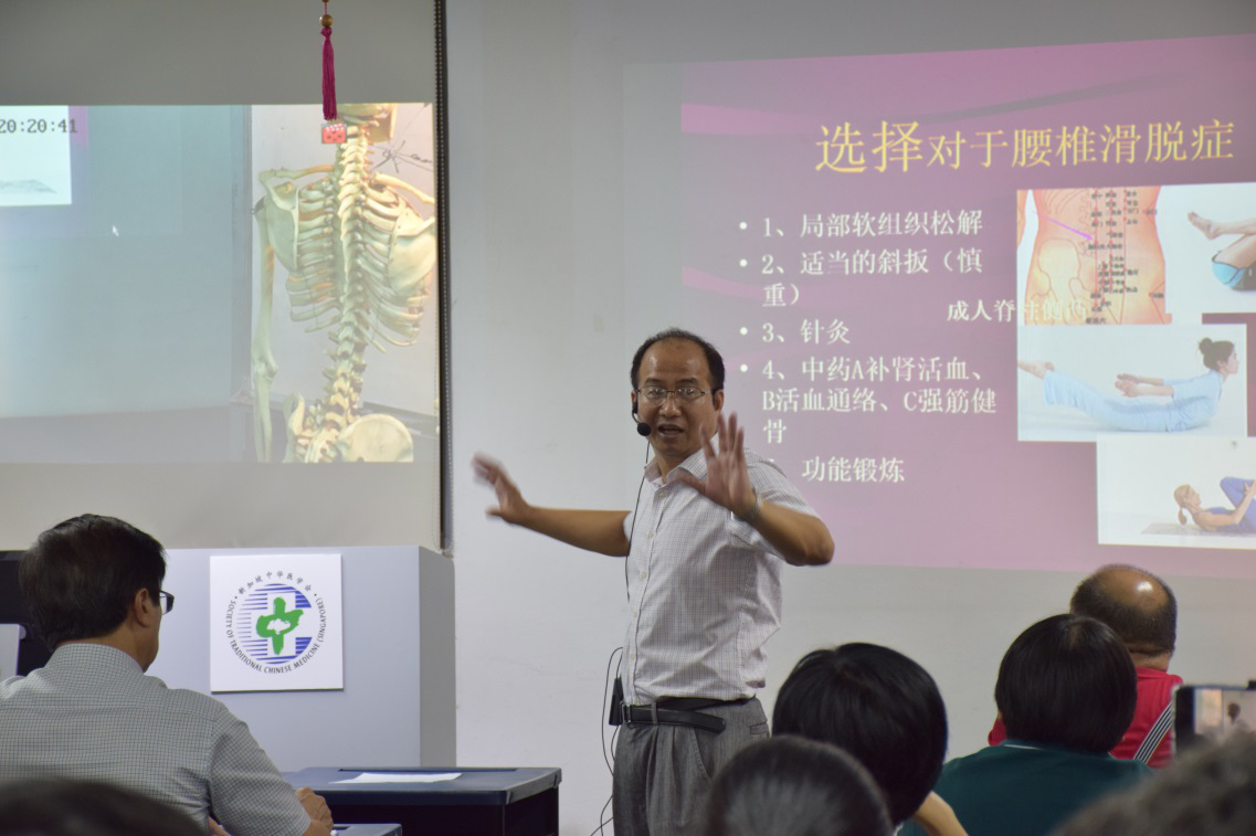 访问期间,周红海教授和陆延讲师与中华医学会附属专科中医研究院何丰明院长、世界手法医学会(新加坡)丘德兴会长就中医骨伤手法技艺进行了交流,并就国医大师韦贵康骨伤正骨手法在新加坡的进一步发展进行了探讨。之后,周红海教授和陆延讲师参观了新加坡陈笃生医院(新加坡国立医院)、南洋理工大学中医诊所。周红海教授和陆延讲师还分别给新加坡中医师学院展示了脊柱相关疾病和踝关节损伤手法, 宣传推广了鸭脖的骨伤特色。