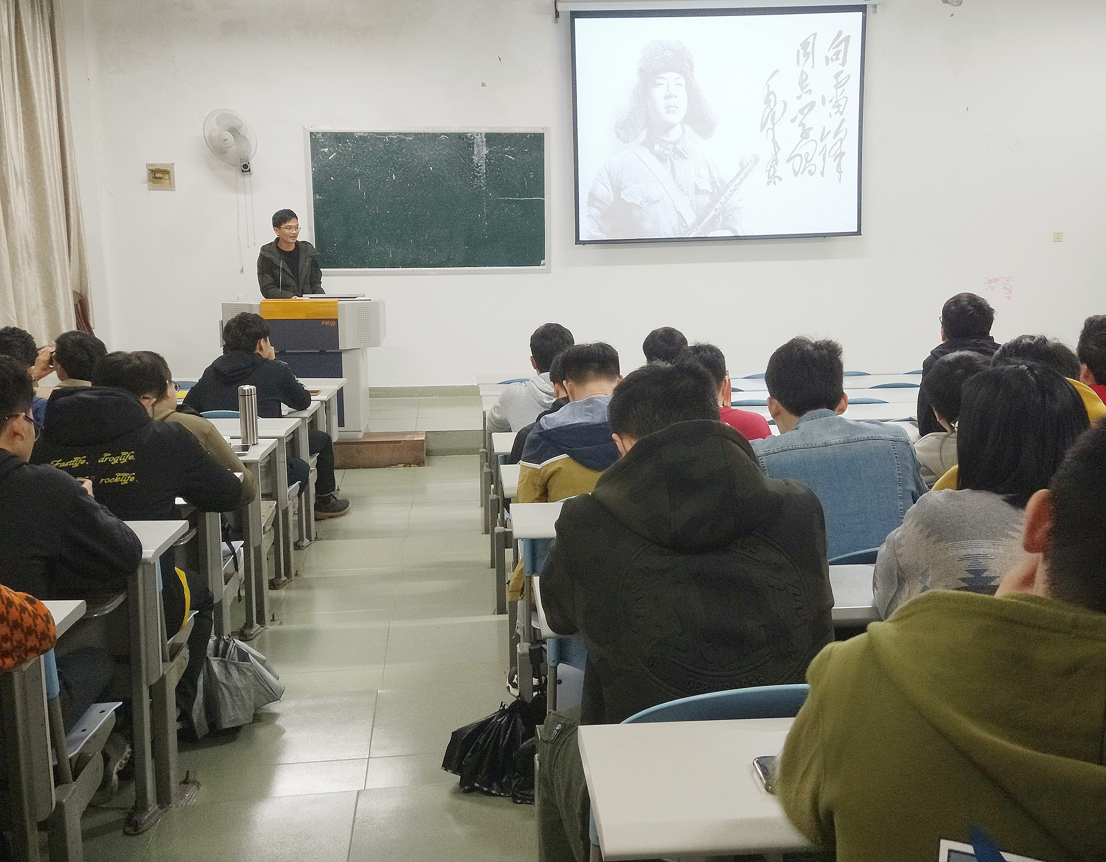 本次活动主要参与对象有骨伤学院团委书记温健老师、2016级骨伤班级成员及2015级骨伤班级成员。在本次活动中,温健老师以风趣幽默的方式为同学们介绍雷锋同志全心全意为人民服务的光荣事迹,为同学们树立起正确的榜样,让同学们进一步的了解到了中国共产党员优秀的高尚品质。正如习近平总书记所言:“一个有希望的民族不能没有英雄!”总书记也曾在多个场合表达对英雄的崇敬,号召全社会崇尚英雄、捍卫英雄、学习英雄、关爱英雄。雷锋同志正是一个民族的英雄,时代的英雄,他是当代青少年学习的榜样,是青少年树立全心全意为人民服务的榜样。