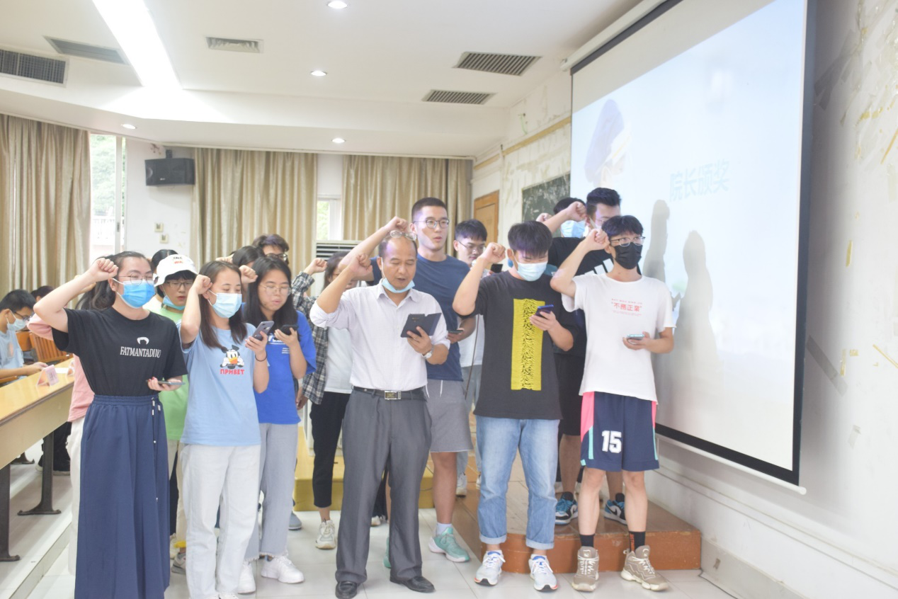首先,周红海院长带大家领到讲台上,举起右拳,整齐地面向党旗庄严宣誓:“我志愿加入中国共产党,拥护党的纲领···”铿锵有力的誓词震撼着在场的每一个人,一字一句,神圣而豪迈,体现了党员干部对中国共产党的无限忠诚。随后,周红海院长强调到:“中国共产党是人民的政党,当与群众心连心,而不能背对群众。”的确,党员干工作就要本着全心全意为人民服务的宗旨,与广大人民群众一起用双手建设美好校园。