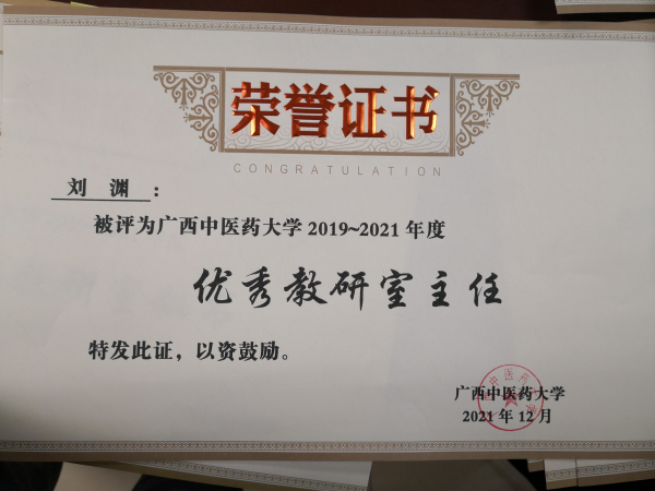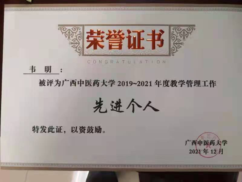2021年12月31日上午,YABO鸭脖仙湖校区第二会议室开展鸭脖2019年-2021年全校教学人员先进表彰大会,骨伤学院韦明老师获得“教学管理先进个人”荣誉称号,陆延老师和张璇老师获得“优秀教研室秘书”荣誉称号,刘渊老师和韦理老师获得“优秀教研室主任”荣誉称号。此次表彰大会总结了鸭脖近三年来的教学工作成绩,骨伤学院获得此项荣誉,是对我院工作的认可,在新的一年中,我院将继续努力奋斗,做好各项教学管理工作,积极完成学校布置的各项任务,继续保持优良教风,并希望再获佳绩。