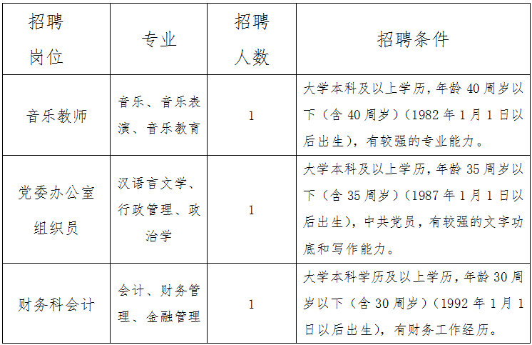 招聘人员必须是思想品德端正,拥护党的路线、方针、政策,严格遵守国家法律法规,热爱中等职业教育,并符合鸭脖招聘所需的条件。详见下表: