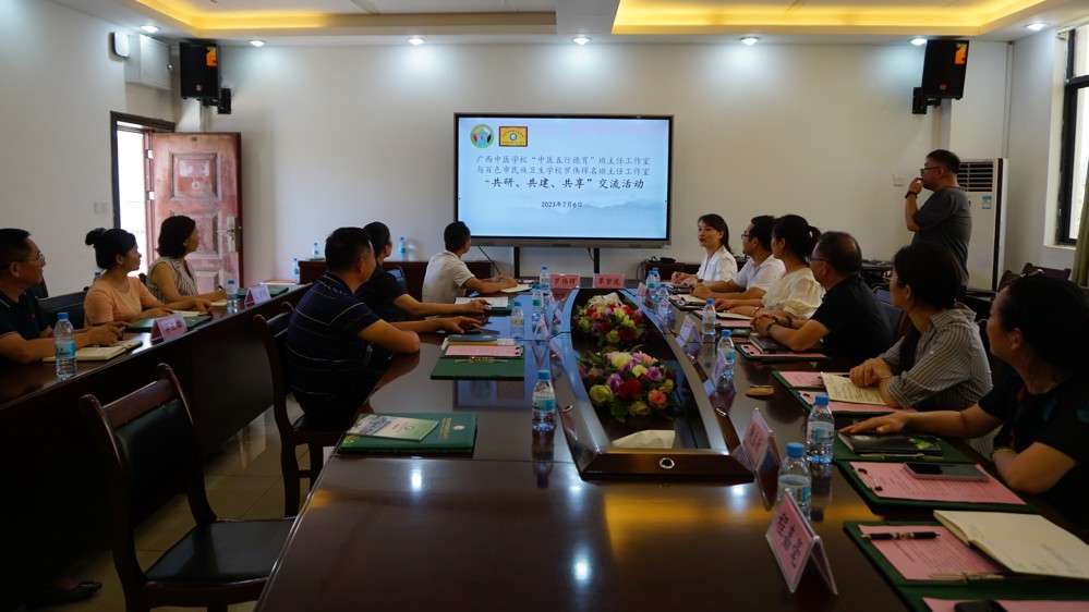 为加强班主任工作室之间的交流学习,更好地发挥工作室的带头和辐射作用,进一步促进班主任工作专业水平的提升,2023年7月6日,广西中医学校“中医五行德育”班主任工作室主持人覃梦岚老师受邀带领工作室成员赴百色市民族卫生学校与罗伟辉名班主任工作室开展“共研、共建、共享”交流活动。
