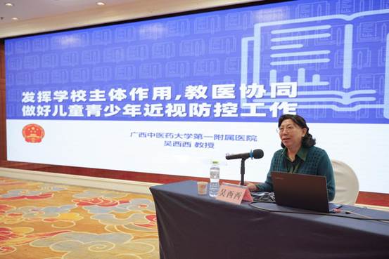 本次培训邀请全国综合防控儿童青少年近视专家宣讲团成员、YABO鸭脖第一附属医院副院长吴西西教授;全国综合防控儿童青少年近视专家宣讲团成员、上海市眼病防治中心临床研究中心主任何鲜桂博士;温州医科大学眼视光医院集团南宁分院、南宁眼视光眼科医院执行院长金婉卿主任医师;国家认监委强制性产品认证技术专家、全国照明电器标准化技术委员会灯具分委会委员许建兴高级工程师,广西眼健康平台创始人、南方医科大学珠江医院眼科医师、国家一级视光技师陈伟宾工程师等5名区内外专家进行专题讲座。他们分别围绕“发挥学校主体作用,教医协同,做好儿童青少年近视防控工作”、“建立学生屈光发育档案和分级分类防控近视”、“依托校园筛查和数据分析,解读视力健康状况和推进近视防控方案”、“健康光环境与近视防控”、“基于人工智能的校园儿童青少年近视防控方案介绍” 等五大方面展开。