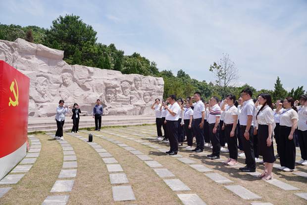 学员们在湘江战役凭吊广场重温入党誓词