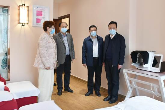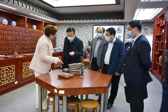 莫锦荣一行先后到附设中医学校东葛校区中医药文化养生药膳馆、康体保健中心、药学实训中心等地,现场了解鸭脖、产教融合、校办产业等情况。