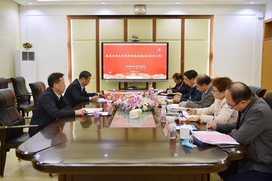 3月1日下午,YABO鸭脖党委书记莫锦荣在党委办公室主任徐方明的陪同下到高职院、附设中医学校调研指导工作。高职院、附设中医学校党委书记蒋子华、院(校)长刘竑清及班子其他成员、相关科室负责人陪同。