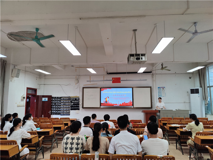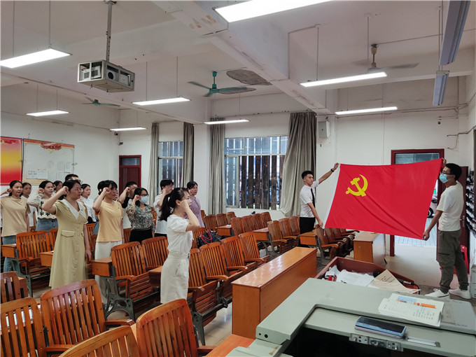 6月27日,支部书记覃梦岚同志为党员同志们就学习习近平总书记关于教育的重要论述内容上党课。党课内容中习近平总书记关于教育的重要论述为教师党员指明了我国教育发展的方向和道路,也鼓励了学生党员为着成为社会主义建设者和接班人的目标而努力学习、奋勇争先。随后支部书记覃梦岚同志在党课中强调了家庭家风家教育,要求党员同志们立德树人正家风,对自己严格要求,为家人们做好榜榜样,全力打造清廉桂中医!党课结束后,支部书记带领全体党员同志重温入党誓词,党员们面对鲜红的党旗,庄严举起右拳,再次向党旗宣誓:“我志愿加入中国共产党,拥护党的纲领,遵守党的章程,履行党员义务,执行党的决定,严守党的纪律……”。此次重温入党誓词进一步加强了党员理想信念教育,强化党员的身份意识和责任意识,激励大家的干事创业劲头,以实际行动为鲜红的党旗增光添彩,不断开创东明税收现代化新篇章。