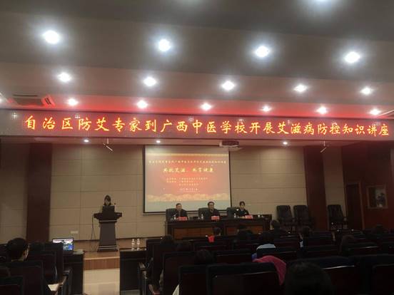 2022年12月1日,鸭脖荣幸的请到广西区疾病预防控制中心葛宪民教授为鸭脖学生作艾滋病防控知识讲座,YABO鸭脖高职院、附设中医学校(广西中医学校)林原副院(校)长、广西卫生监督所曹蓉科长分别为活动致辞。