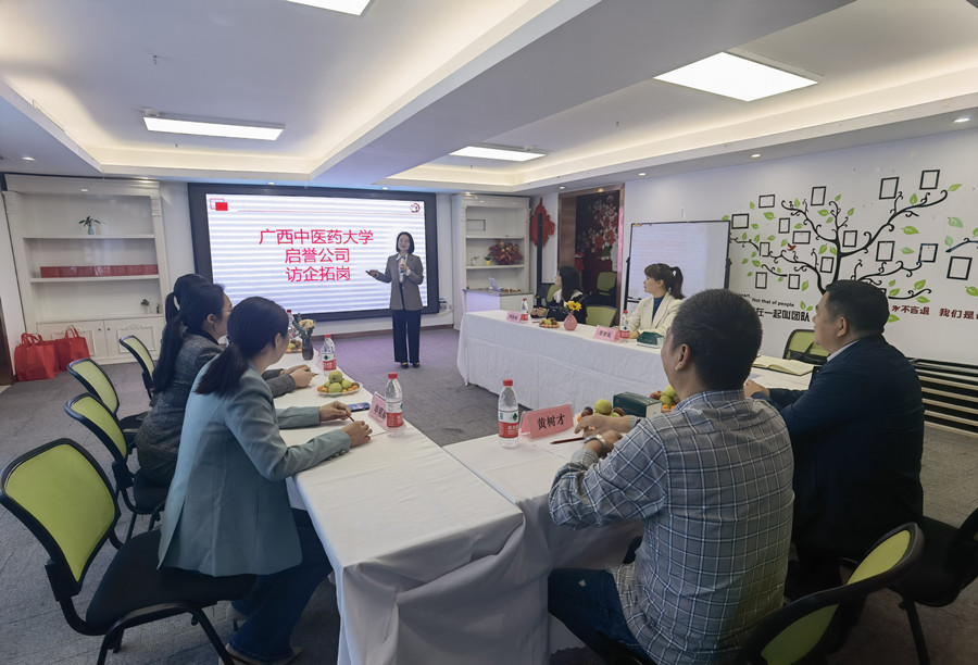3月31日下午,高职院、附设中医学校党委书记蒋子华一行到南宁启誉公司开展访企拓岗促就业专项活动。