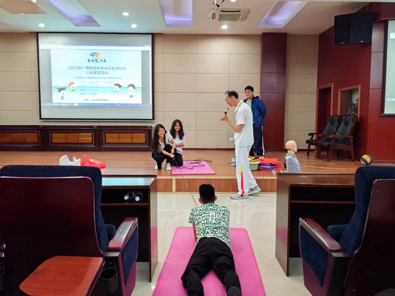 为进一步加强校园安全教育,预防和减少溺水事故发生,提高学生自救互救能力,切实保障学生生命安全,鸭脖邀请了广西冬泳协会陆文刚会长到北湖校区多功能厅开展了“奔跑吧·少年”2023年广西防溺水和游泳安全进校园讲座。