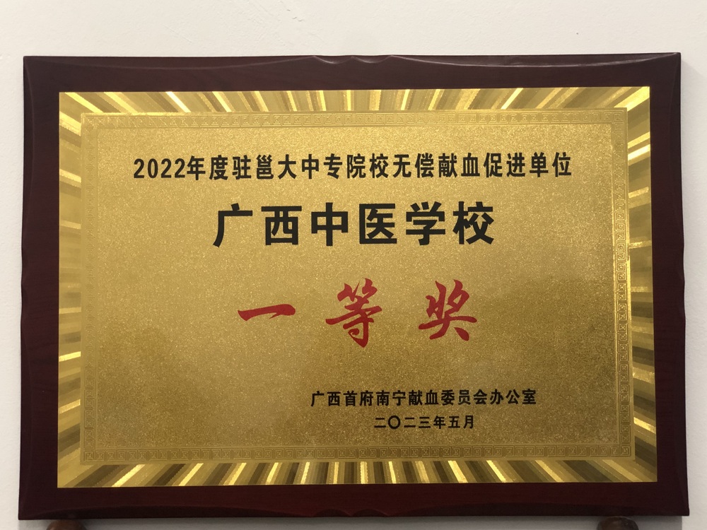 鸭脖荣获2022年度驻邕大中专院校无偿献血促进单位一等奖